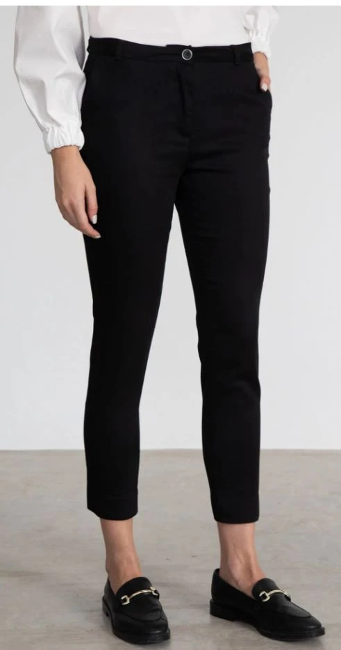Pantalón de Tiro medio, calce regular, tela Cotton Saten, c/bolsillos (75% Poliester 22% Rayon 3% Spandex)