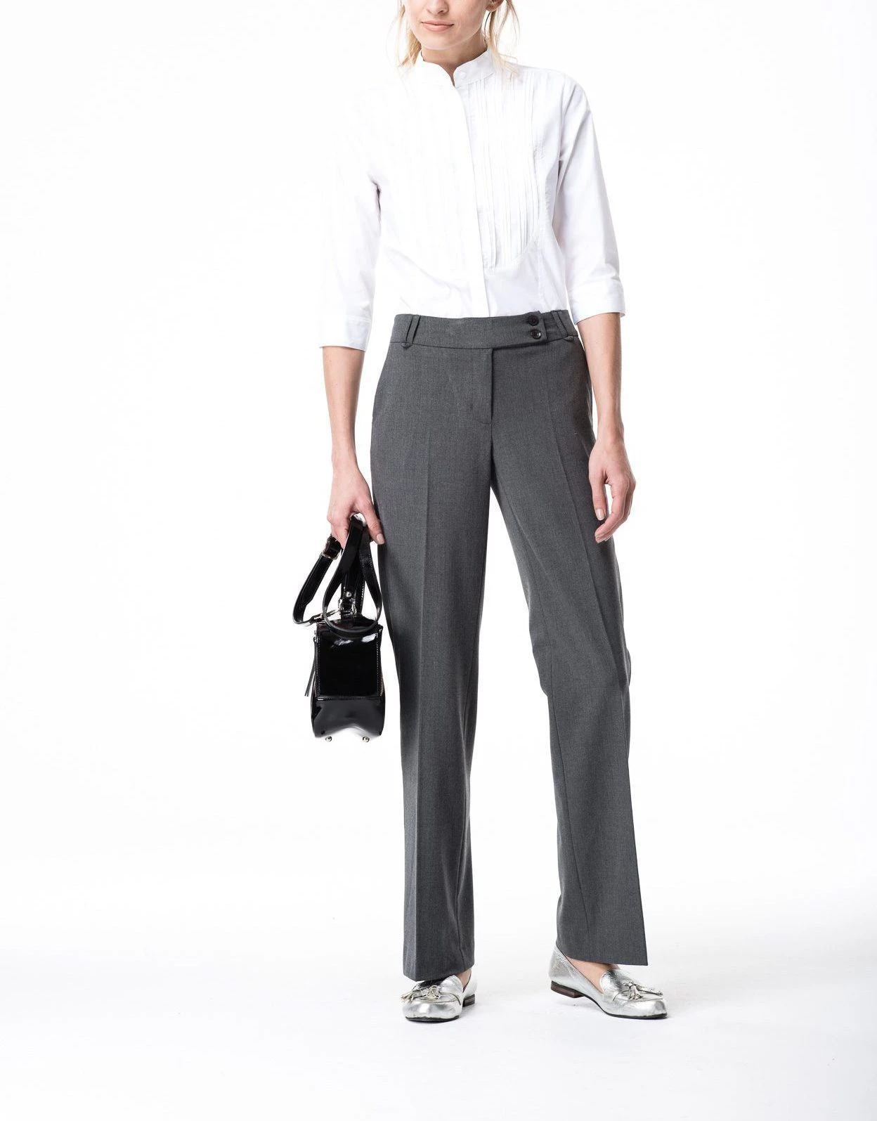 Pantalón botamanga ancha, tiro medio, con cintura cruzada, doble botón mas botón interno de cintura, doble presilla en cintura delantera. El género sastrero con Spandex proporciona mayor movilidad y hace que la prenda luzca siempre impecable, no se arruga y es súper cómoda.