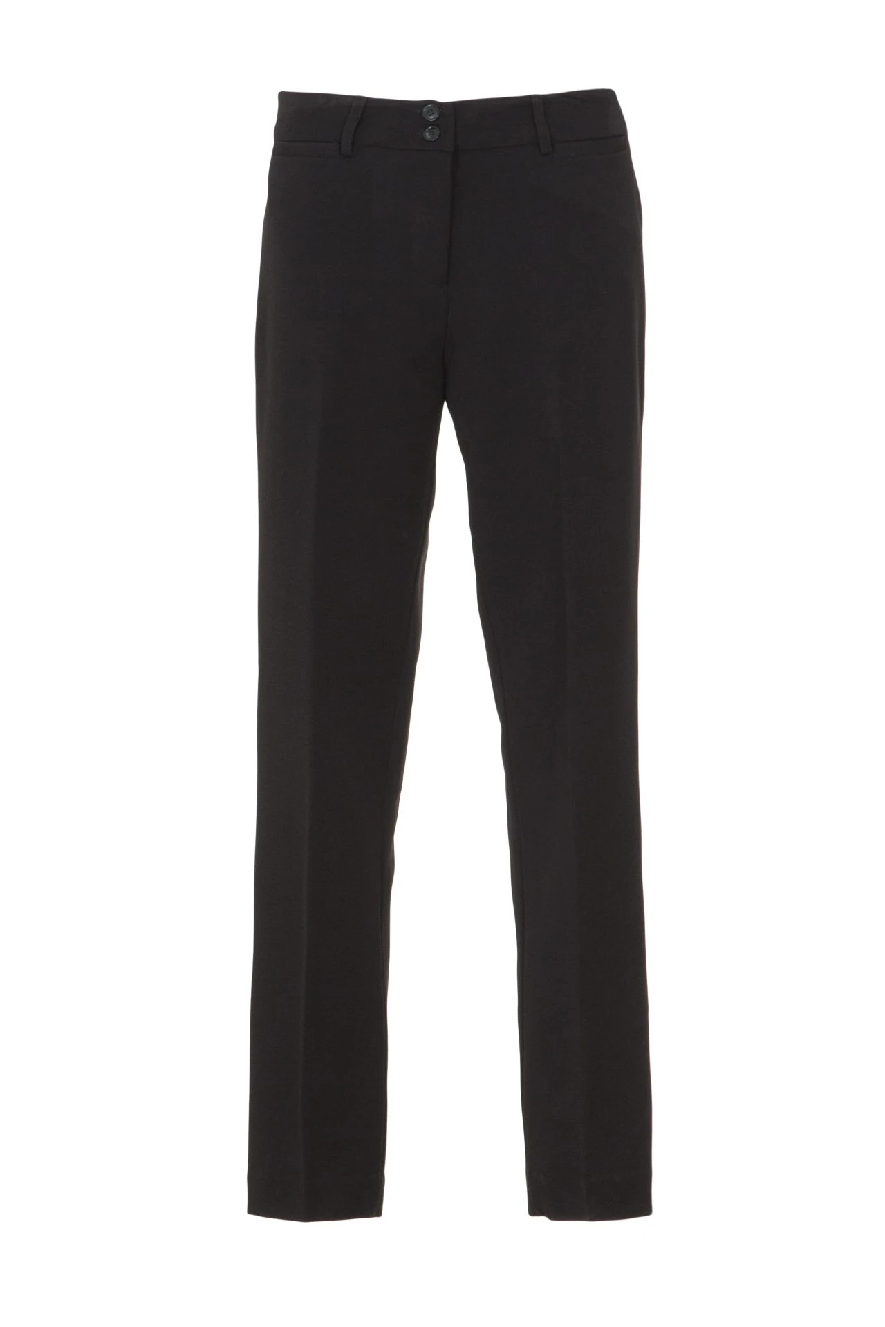 Pantalón tiro cigarette medio, con doble botón a la vista. Bolsillos frontales tipo relojeros. El Género sastrero con Spandex hace que la prenda luzca siempre impecable, no se arruga y es súper cómoda para usar. Ideal para el uso con stilettos o zapatillas.